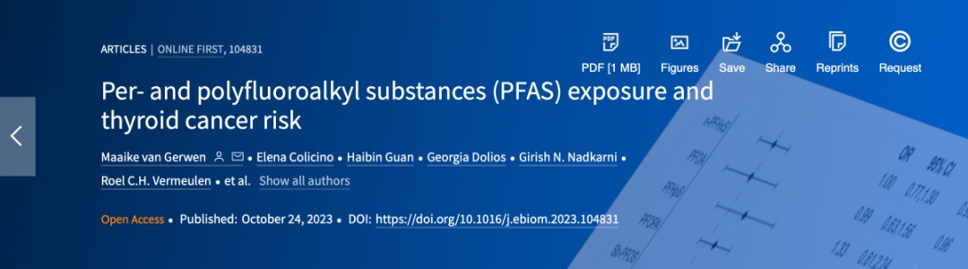 10月24日,《柳叶刀》子刊“ eBioMedicine ”上发表的一篇研究显示,当PFAS中的直链全氟辛烷磺酸盐(n-PFOS)的浓度每增加一倍,甲状腺癌的诊断率增加了56%,乳头状甲状腺瘤的诊断率也随之增加了56%。
