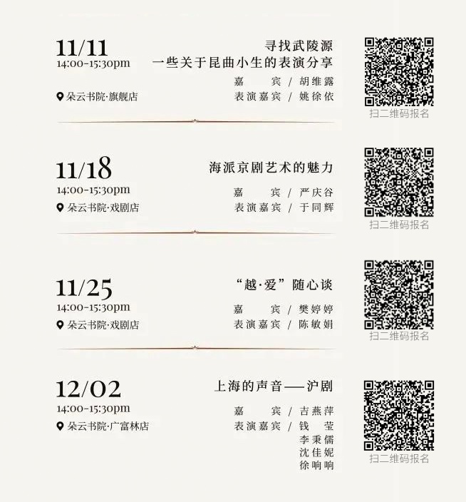 本次系列讲演活动随后将陆续登陆朵云书院·旗舰店、朵云书院·戏剧店和朵云书院·广富林店与广大戏剧爱好者相见,后续活动信息可关注“上海文联”“世纪朵云”等公众号。