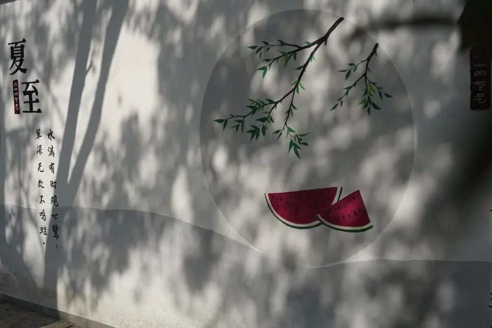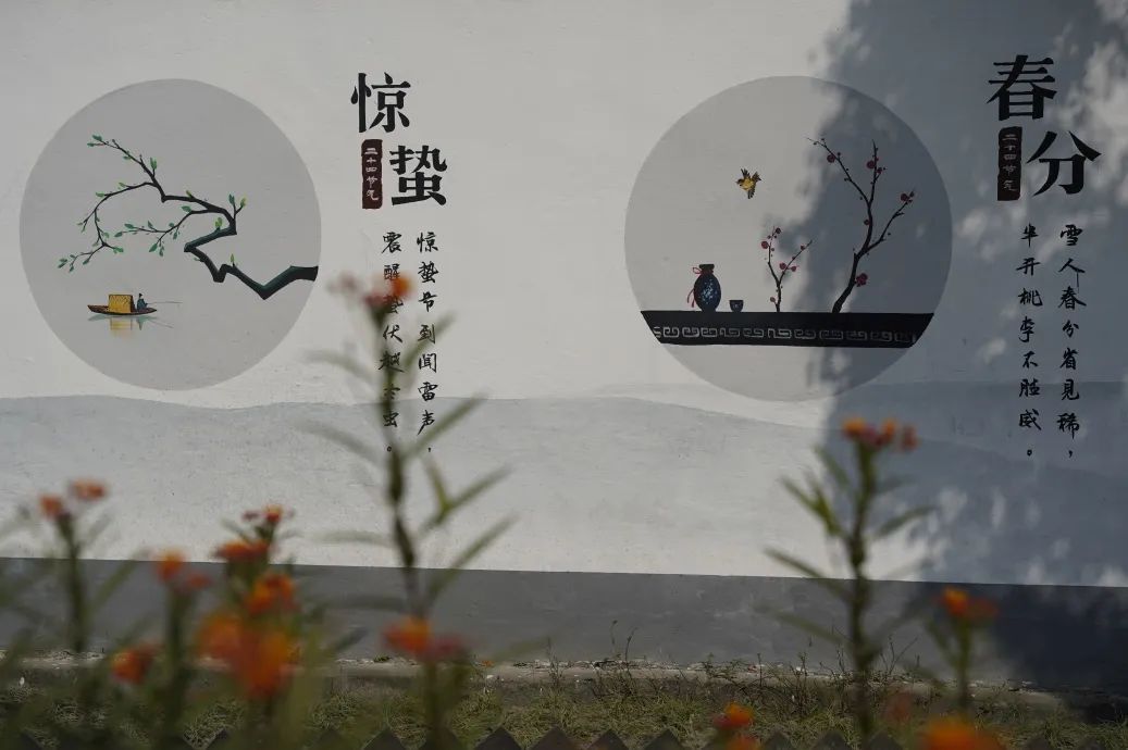 目力所及,交相辉映的文化墙,点缀有立春、雨水、惊蛰、春风等“二十四节气”,与婆娑树影静动交织,构成了一道颇具诗情画意的风景线。