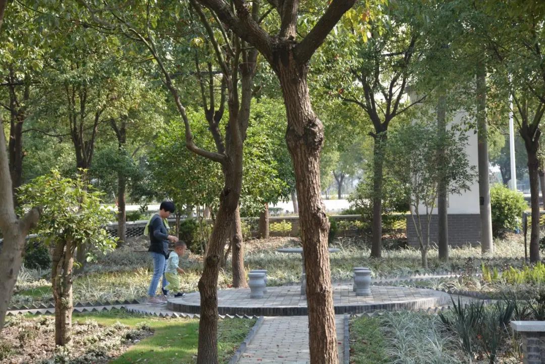 秋日时光,走近芦潼社区中心·党群服务中心,映入眼帘的是环境怡人的村民公园。往里走去,步道蜿蜒、草木葳蕤、鸟语花香,成为时下村民休闲锻炼的好去处。