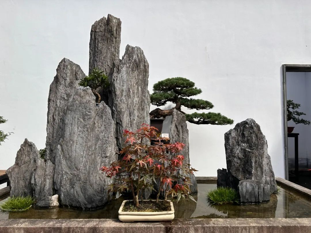 “松风雅韵”盆景展在兰瑞堂展出,黑松、白蜡、五针松、雀梅、映山红、杜鹃和青枫等近30盆精品树桩盆景,展现精妙绝伦的中国盆景文化。