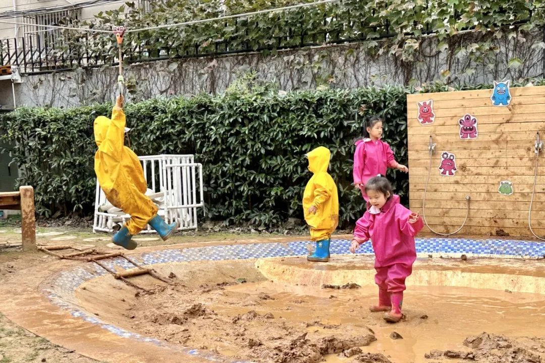 超大号积塑搭成小汽车,“司机先生,准备开动了!”;站上木板搭建的临时小舞台,手拿积木麦克风,便化身小小歌唱家;用积木和道具建个“池塘”,拿起小钓竿,小小“姜太公”登场了。还想在泥地里打滚?满足!穿上幼儿园特别提供的防护服,任你在泥浆池上空索道滑行,或是“啪叽”一脚踩进泥坑。