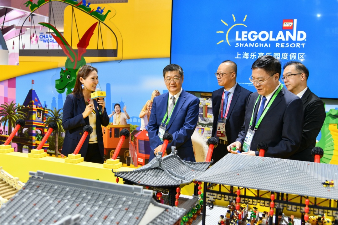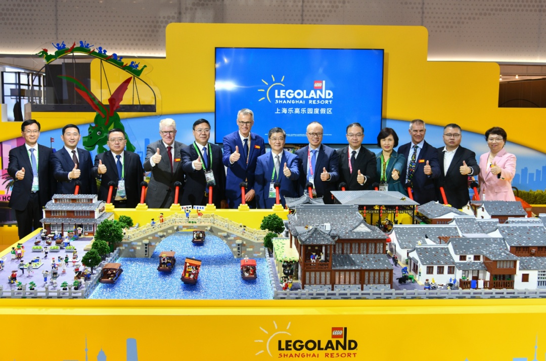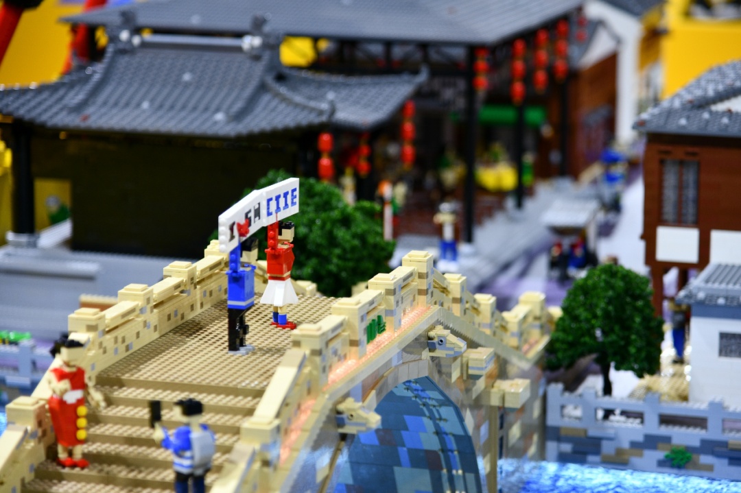 上海乐高乐园度假区迷你天地枫泾古镇模型在进博会现场正式揭幕,36000块乐高积木搭建的微缩景观,生动形象地展现了金山枫泾古镇的地域特色。区委书记刘健出席仪式并致辞,区委副书记、区长李泽龙出席仪式,上海市文化和旅游局副局长金雷出席仪式并致辞。