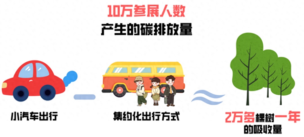 每10万参展人次选择集约化出行方式,其相比小汽车的减排量可相当于2万多棵树一年的吸收量。