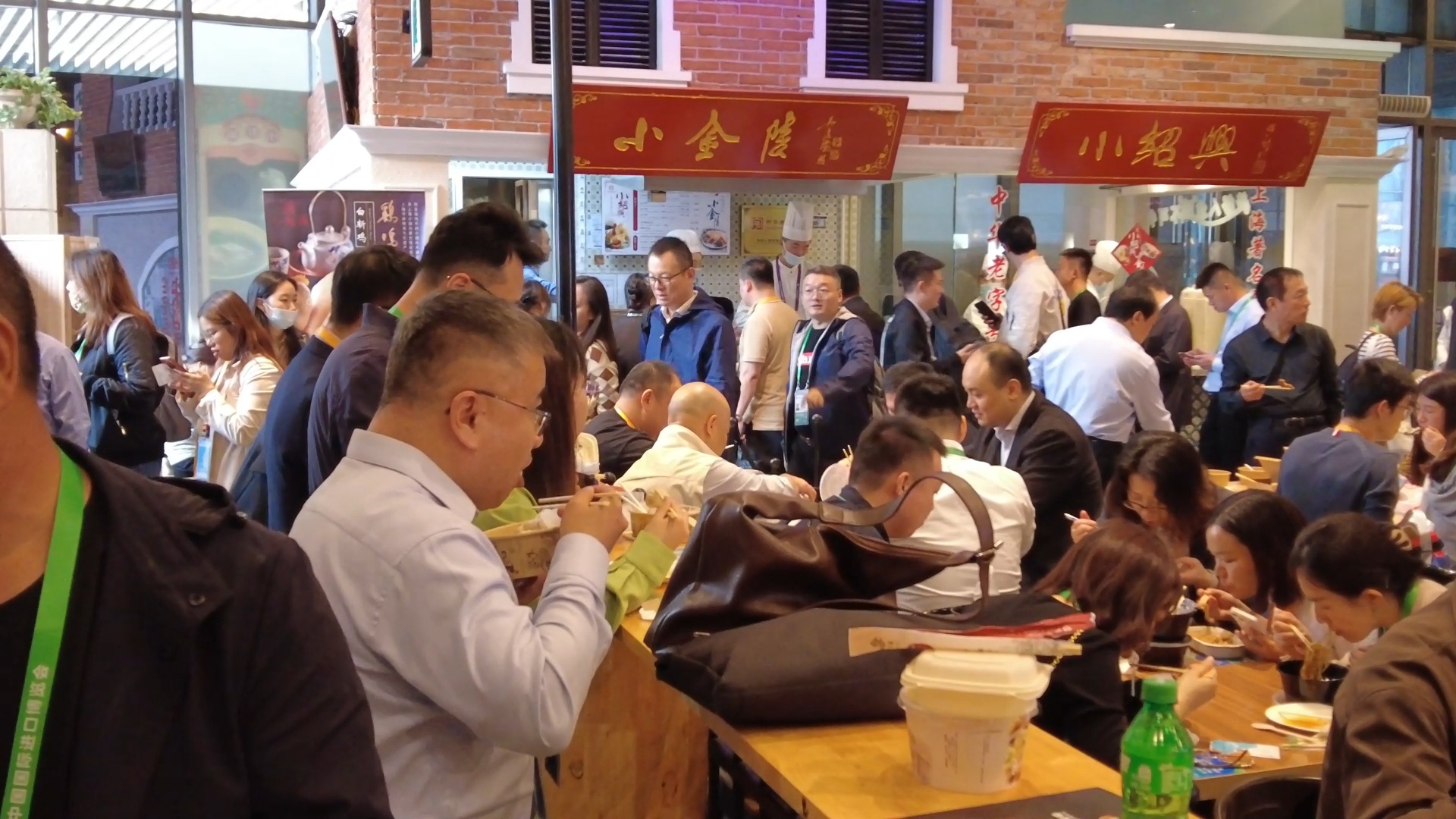 临近中午,上海特色小吃馆内人头攒动,不少参展观展人员来到这里吃午饭。来自沈阳的参展商韩先生点上一碗松月楼的葱油拌面,加上一笼南翔馒头店刚刚出炉的小笼,再配上一碗热汤,这顿午饭显得十分惬意。