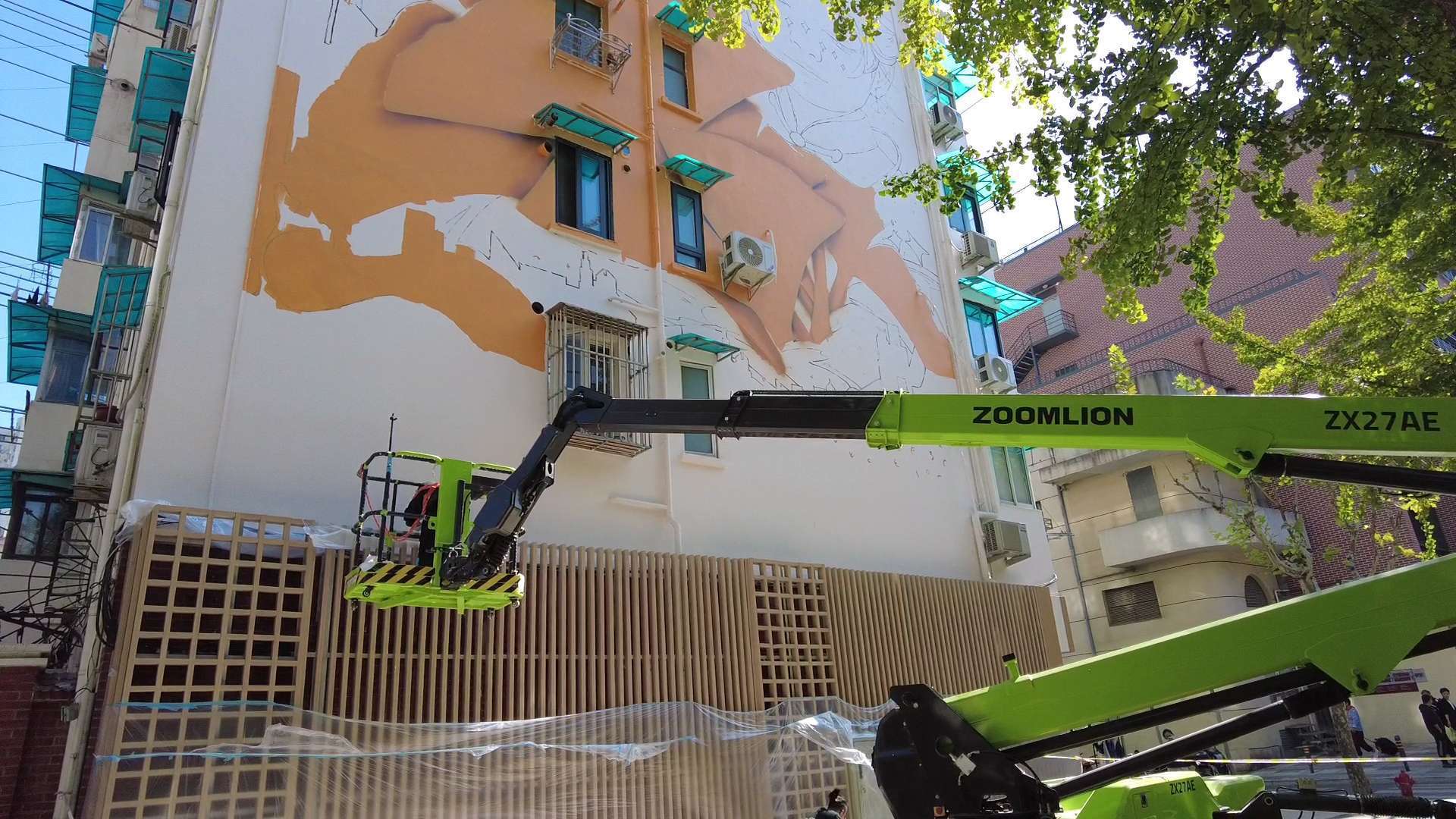 今年黄浦区五里桥街道在推进“”一街一路”城市更新中,吸引到社会多元力量的共同参与。经过一个星期的绘制,从今天起,一幅巨型涂鸦出现在有“银杏大道”之称的局门路上,不仅解决了居民急难愁盼的问题,还增添了又一处打卡地。