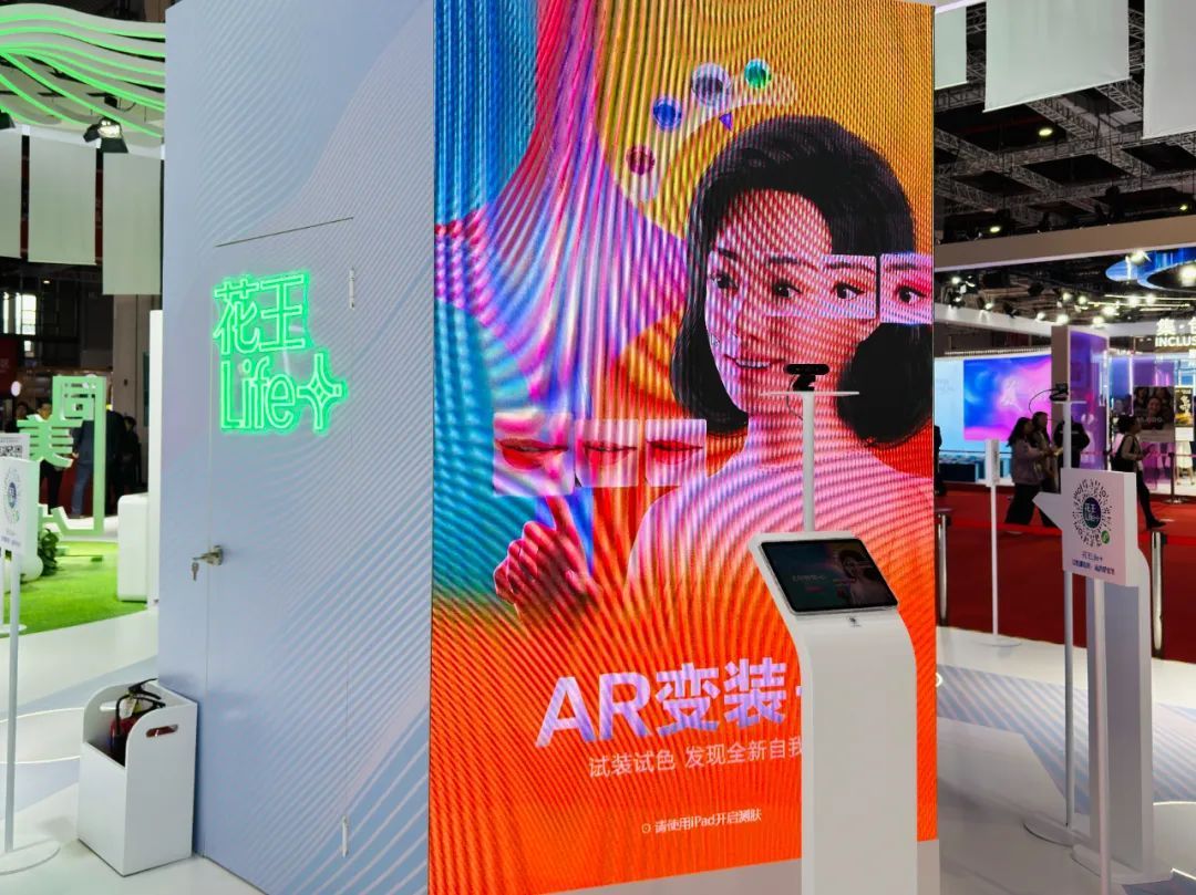 今年进博会上,花王(中国)带来了最新研发成果——花王Life+在线智能小程序,其内置的AR试色功能通过捕捉肤色、皮肤亮度以及五官轮廓数据,帮助受众找到专属个性发色。