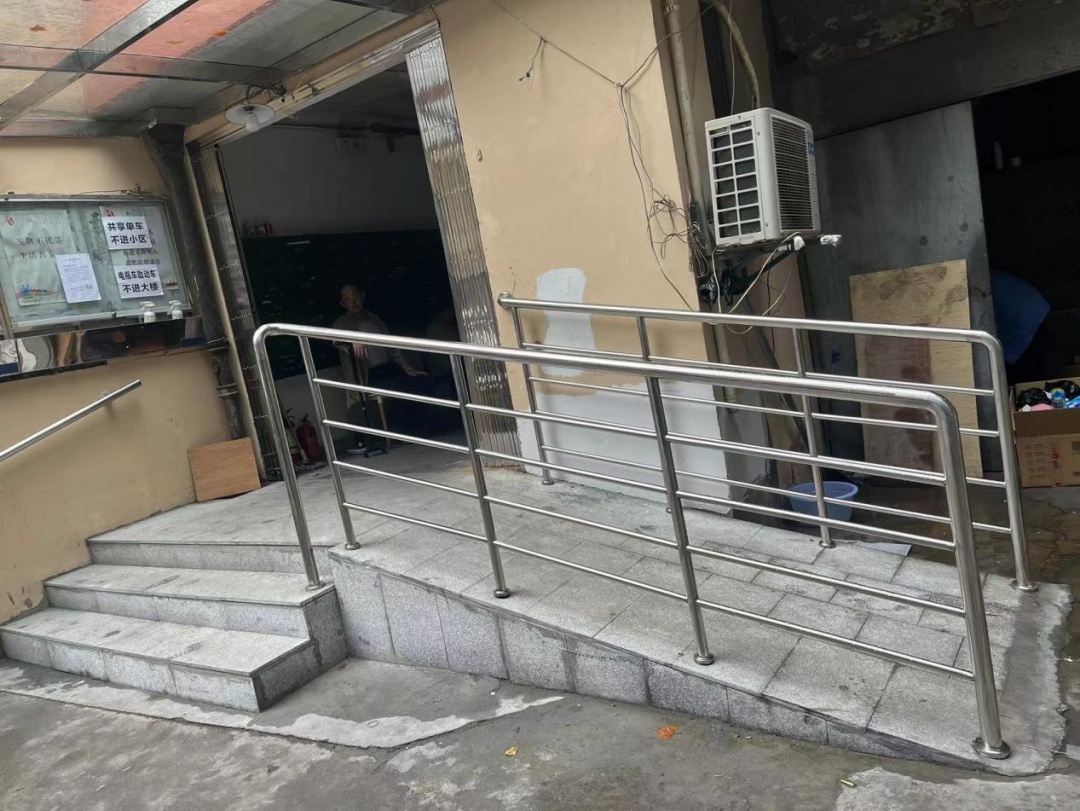 “以前我们坐轮椅下楼很困难的,我老伴年纪大了,也搬不动轮椅。好在现在这些问题都解决了,我和老伴也终于可以正常出门了。”面对家门口的小坡道,平凉路1365弄飞帆小区的居民王大爷不禁竖起了手指。