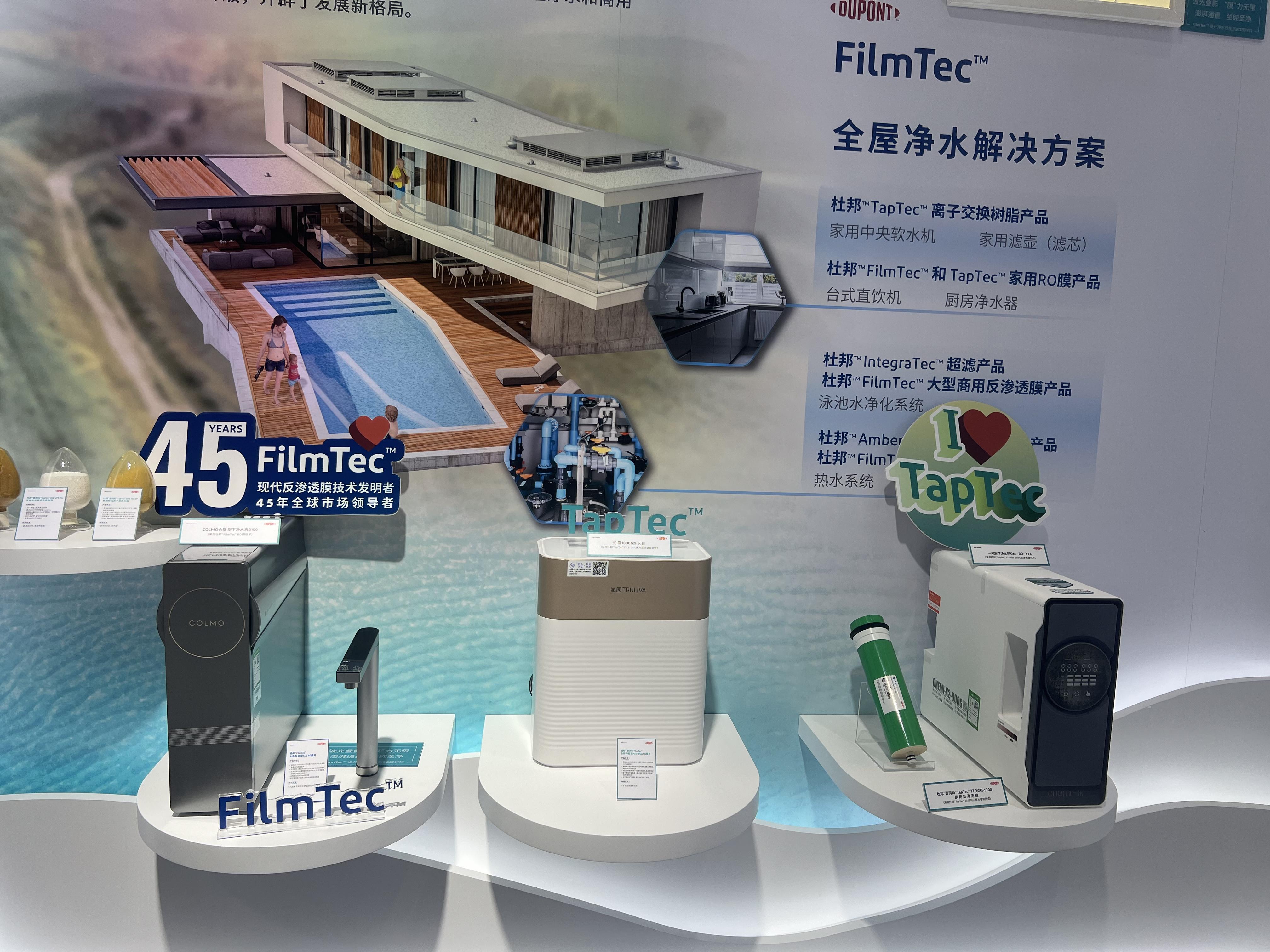 水是人类赖以生存的生命之源,本次杜邦在水处理展区所展示的是曾获多项国际奖项的水处理解决方案,包括工业及市政用水、全屋及商用净水、生命科学及制药、废水处理及再利用等领域的技术及产品。没错,您家用的净水机里的滤芯可能就来自杜邦。