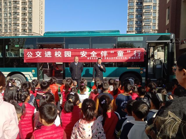 2023年消防安全日到来之际,11月6日上午,济南公交干线公司四队、七队与七贤街道睿贤社区一起参与共享共建,走进七贤街道睿贤社区睿城幼儿园,开展“公交进校园,安全伴‘童’行”活动,党员高星级驾驶员现场为幼儿园小朋友讲解安全乘车知识。