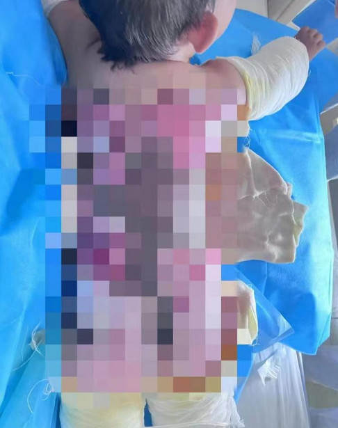 近日,德州市临邑县一名两岁男童泽泽因在老家玩耍时,不小心坐到刚烧好的热水锅里,导致四肢等处大面积烫伤,被诊断为三度烫伤,正在济南一家医院重症监护室接受治疗,目前已经渡过休克期,但连日来反复发烧,仍处于感染期。
