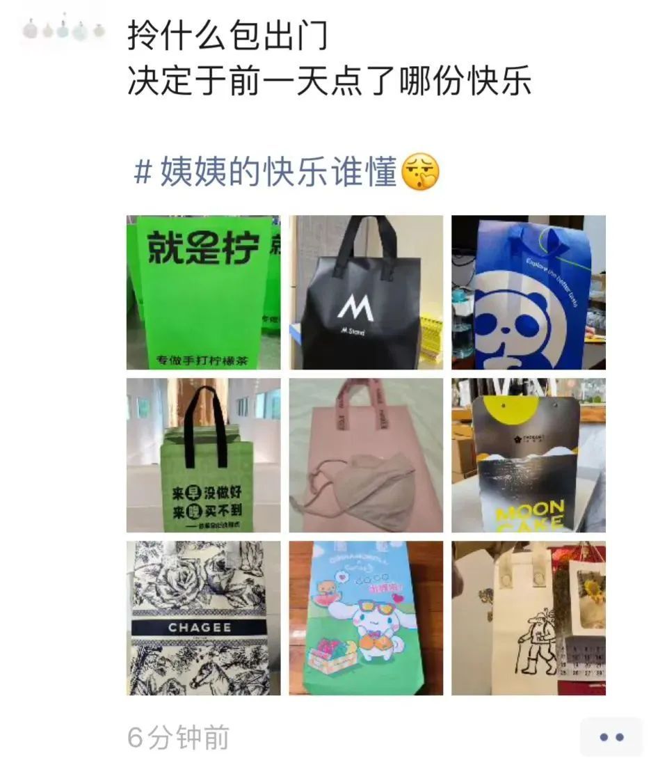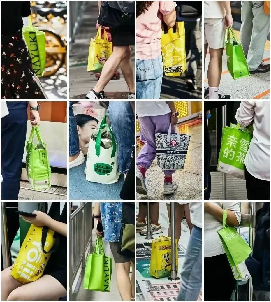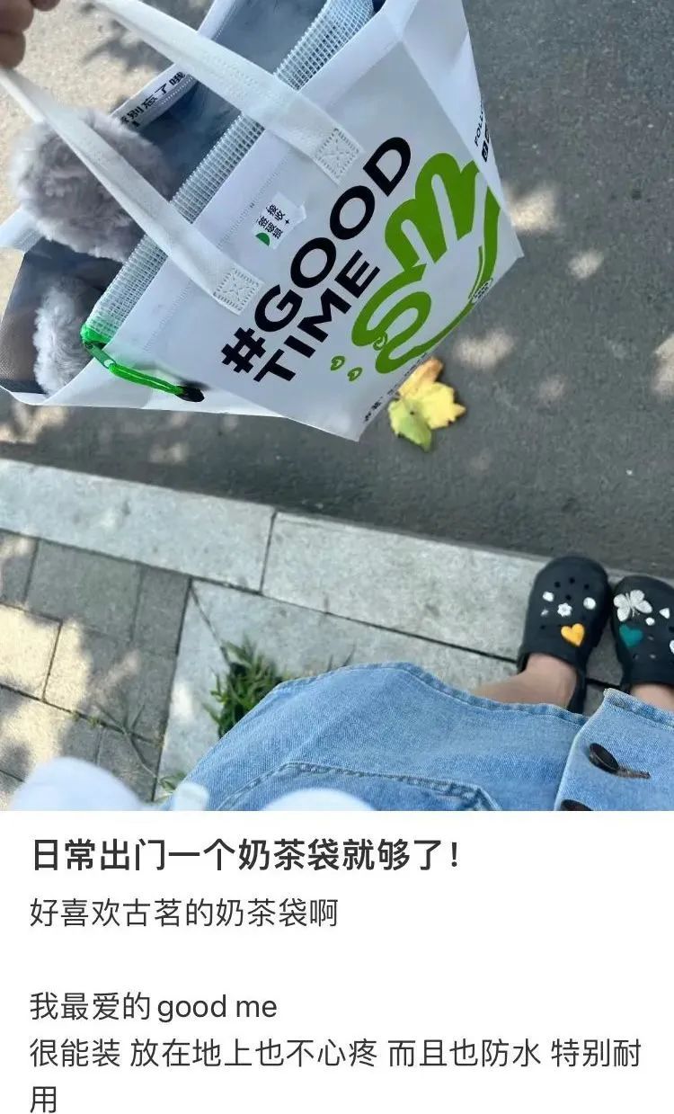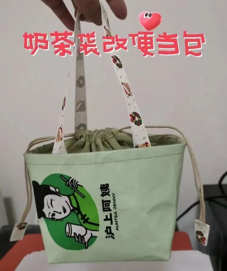 社交平台上也刮起了一阵奶茶袋通勤风~