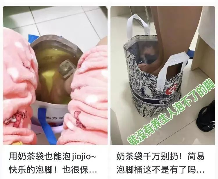 各式奶茶袋泡脚的照片放在整个泡脚界都是十分炸裂的。