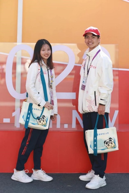 徽章、运动鞋、专属帆布包、肩枕、眼罩……华理送给“小叶子”们的“装备”,既美观又实用,可谓无所不有、面面俱到。带着这份暖心大礼包,感受学校在物质与精神上的双重支持,相信“小叶子”们一定会备受鼓舞,在进博会上奉献更热情的服务。这一系列独家定制的华理版进博文创产品,也展现了华理的风采与进博精神。