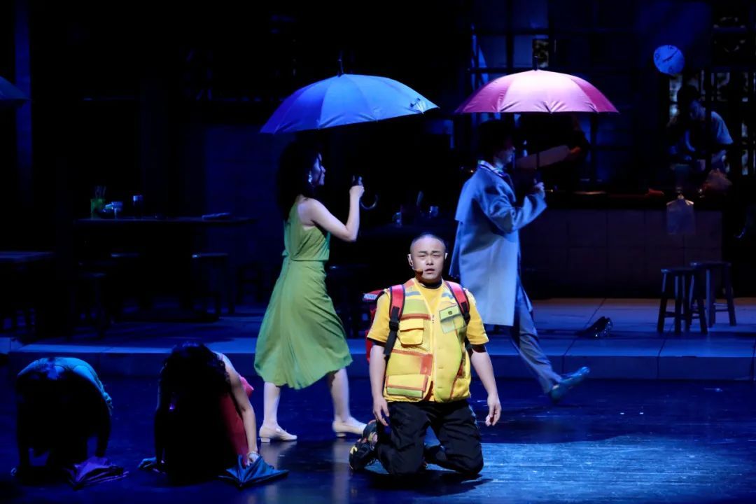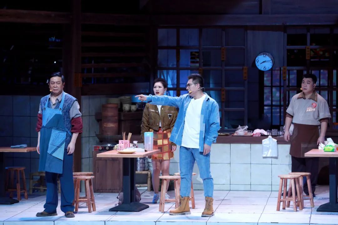 该剧的贯穿情节线为店主林茂生和儿子林夏至的父子矛盾,这是林家遇到的问题,也是社会发展过程中的代价和痛楚。这一情节线的设置,时代色彩突出,贴合在一碗生日面上,匠心独具。若能有更多饱满细节的支撑而不只停留在概念上,舞台上下的情感将强烈共鸣。小小的沙县小吃店用各种物美价廉的美味抚慰了众人心,主线之外《幸福的烟火》依托小吃店刻画了群像,大都市中的小人物各有悲欢,是普普通通的小吃店给了他们温暖。