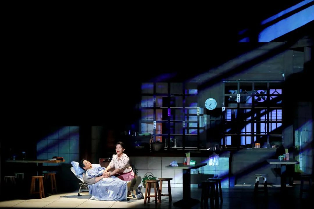 小小的沙县小吃店,关联着错综复杂的人物关系和沪明两地的渊源情深。全剧以二幕四场的紧凑结构,在场景的灵活转换中,通过林茂生的梦境、回忆,将夫妻间的过往重现,让他们跨越时空拥有彼此心灵的守护。舞台上主次场景的并置,将同处一座城市、不同空间情境中的父子相互映照,也把人物彼此的情感、命运紧紧连接在一起。