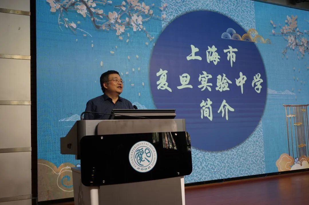 上海市复旦实验中学校长刘刚介绍了学校基本情况,并着重分享了学校在中华经典诵读工作方面的经验,