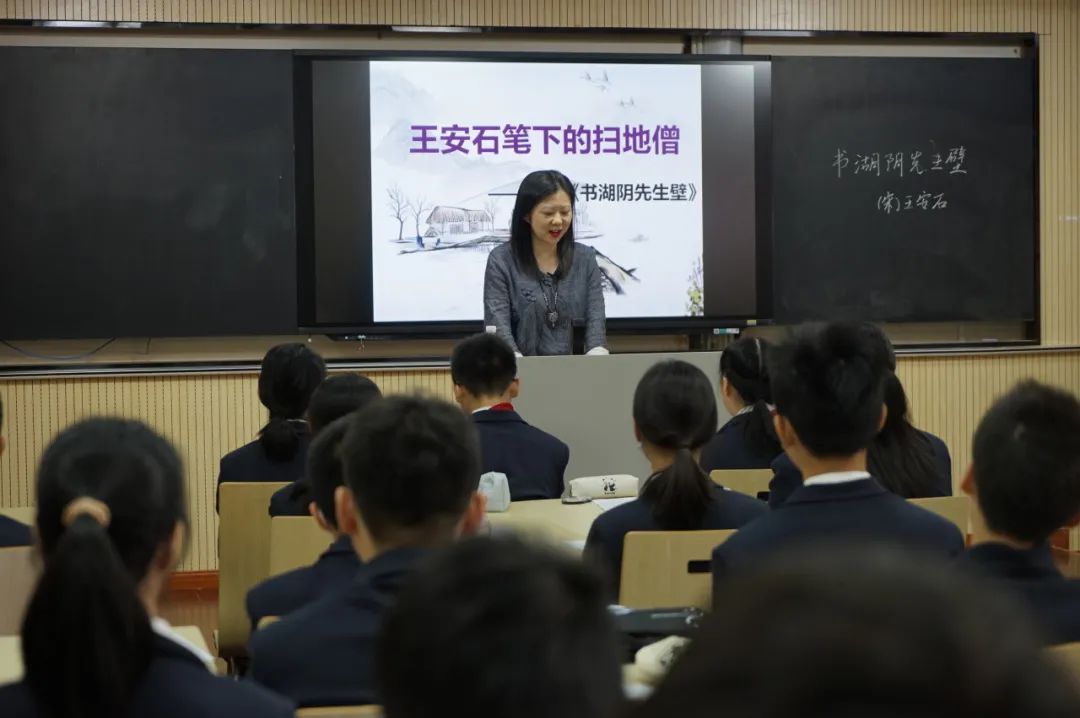 将自身深厚的古典文学底蕴与语文日常教学相结合,创设沉浸式课堂体验,这节课以“王安石笔下的扫地僧”为切入点,引起了同学们的探究欲,以“扫地僧”比喻王安石笔下的湖阴先生,带领同学们深入发掘湖阴先生高洁、淡雅的品性。