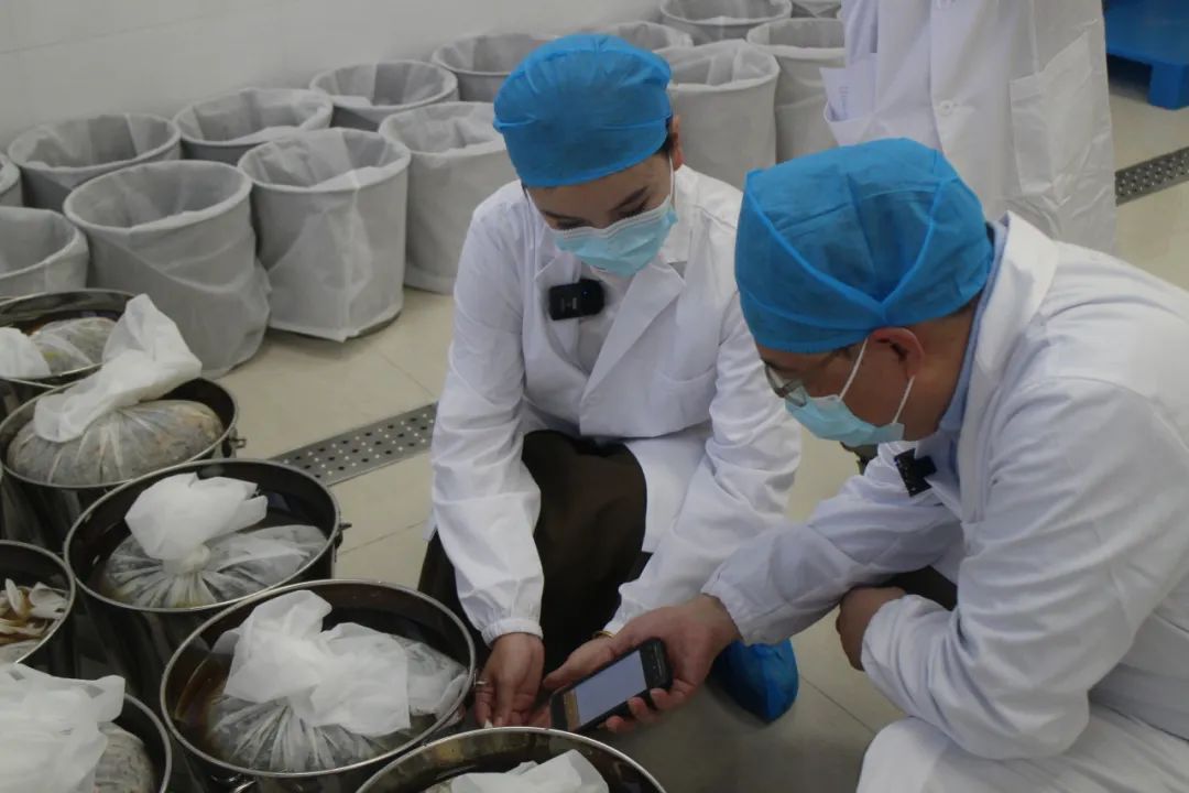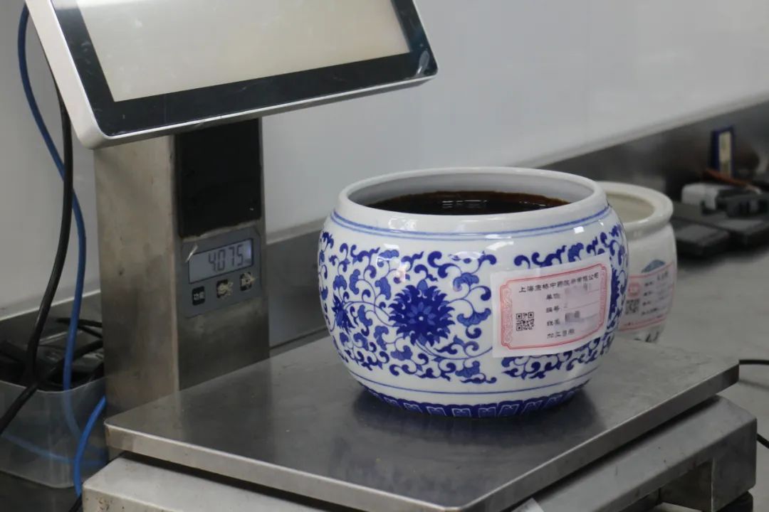 他们通过手持终端跟踪膏方加工的每个关键环节是否合规,包括浸泡、煎汁、沉淀等每个关键环节的时间、质量要求都有严格要求,每一料膏方从收料开始就赋有唯一的身份二维码,进行制作加工合规性的全程追溯,这也是上海唯一采用这种信息化技术手段进行追溯的煎膏中心。