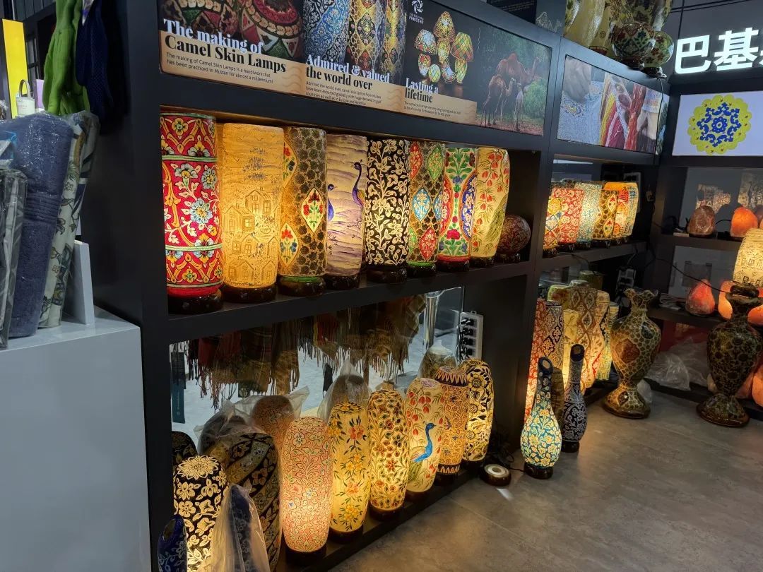 骆驼皮灯作为独特的艺术品,是巴基斯坦传承千年的文化遗产。在进博会的巴基斯坦品质生活展台,几十只骆驼皮灯同时绽放光彩,唯美的异域氛围扑面而来,为进博会增添了一份浓烈的文化气息。