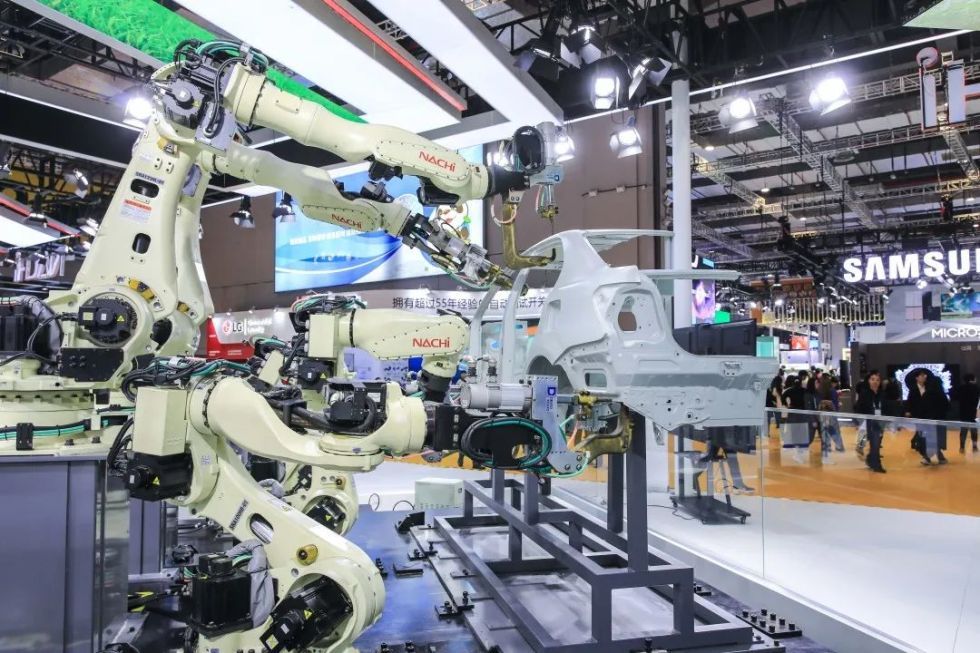 不二越的高速多用途高性能机器人的机械臂上下挥舞,充分展示着智能制造装备的魅力。现场工作人员介绍,这可以用于汽车智能制造的自动化焊接产线,通过把马达等零部件集成在管线包中,更方便在狭窄空间作业,机械臂之间也不易缠在一起。