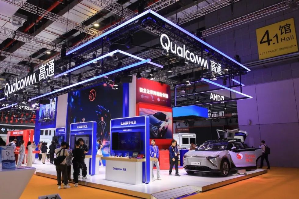 在集成电路和人工智能专区,主旋律是时下火热的人工智能。高通与60余位合作伙伴一起,带来了超过90项展示,包括多款首次亮相国内线下展会的新发布产品。现场,终端式生成AI几秒之内可以把一幅残缺的画补全,也可以把一首只有开头的曲子继续创作下去,促使生成式AI扩展至更广范围。