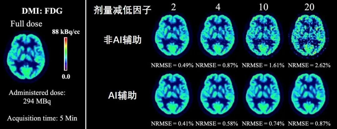 图2:基于AI的低剂量PET图像复原