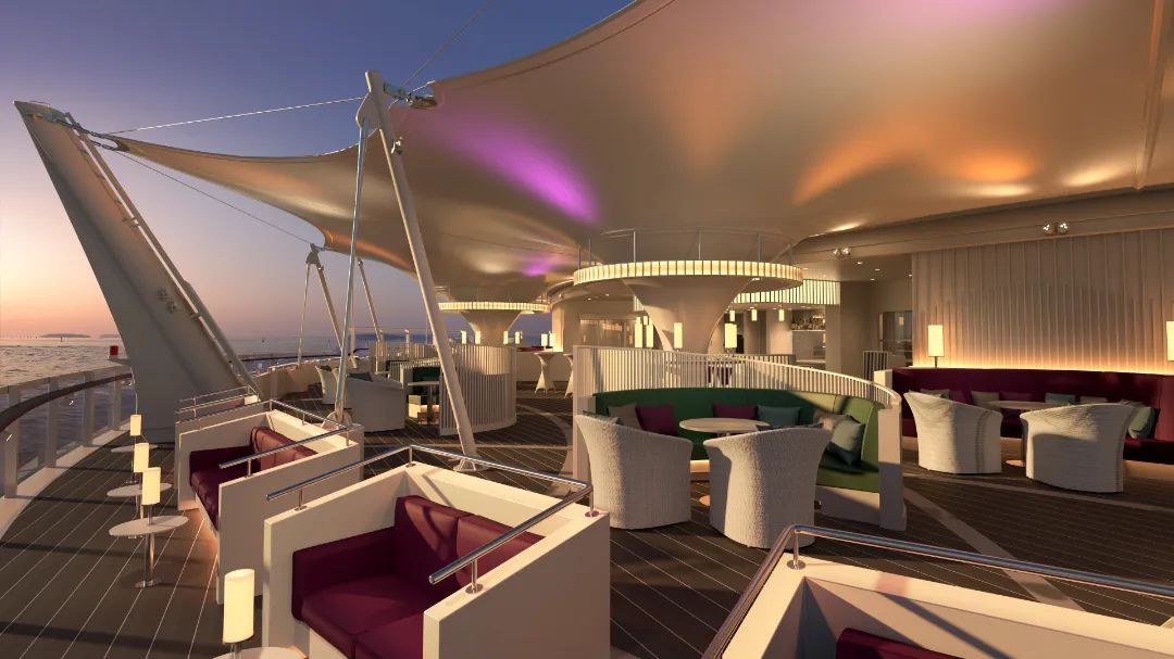 据了解,爱达·魔都号船体涂装从敦煌壁画艺术中采撷灵感,以“丝绸之路”为主题,借鉴了敦煌飞天的飘带元素,将经典的颜色与灵动的线条融为一体,创新演绎东方文化韵味,带来全新的美学体验。全船综合造船、电气、酒店、服务业等众多领域的科技成果,创造出高度集成化的“巨系统工程”。庞大的公共区域占地4万平方米,高达16层、接近6个标准足球场,满足乘客吃游购娱全面需求。