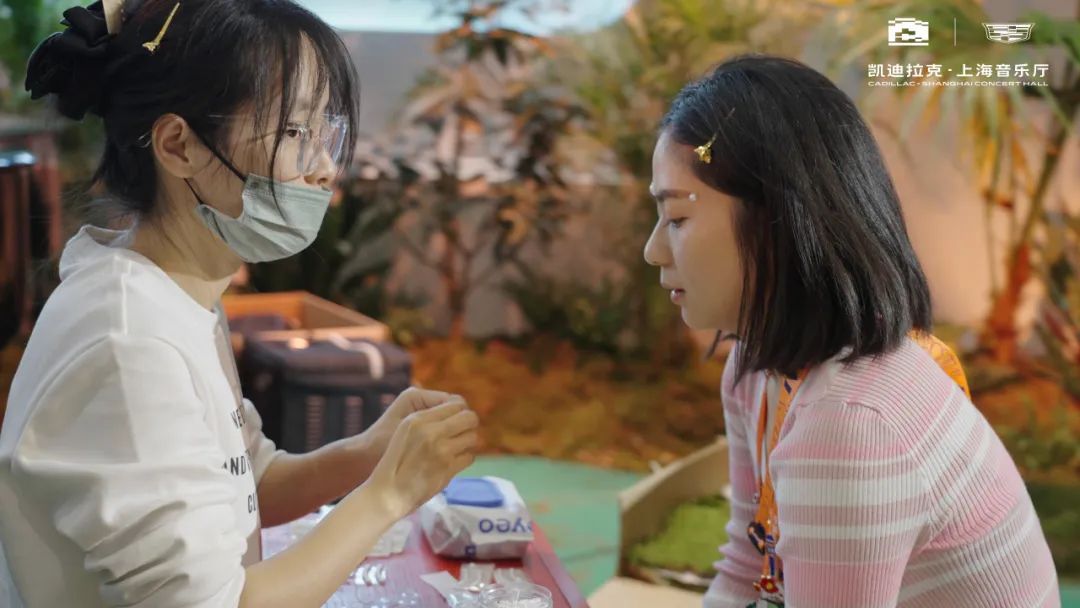而为了向记者们致以节日的问候,当日表演团体——自得琴社安排了妆造师,现场为记者画简易“珍珠妆”。