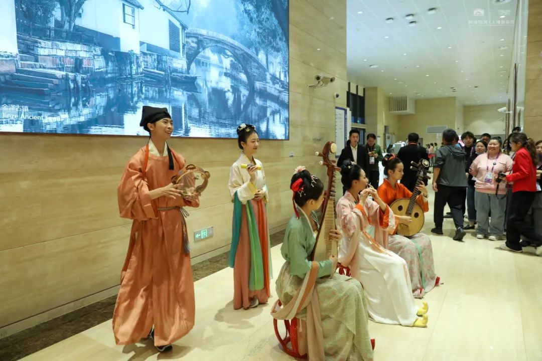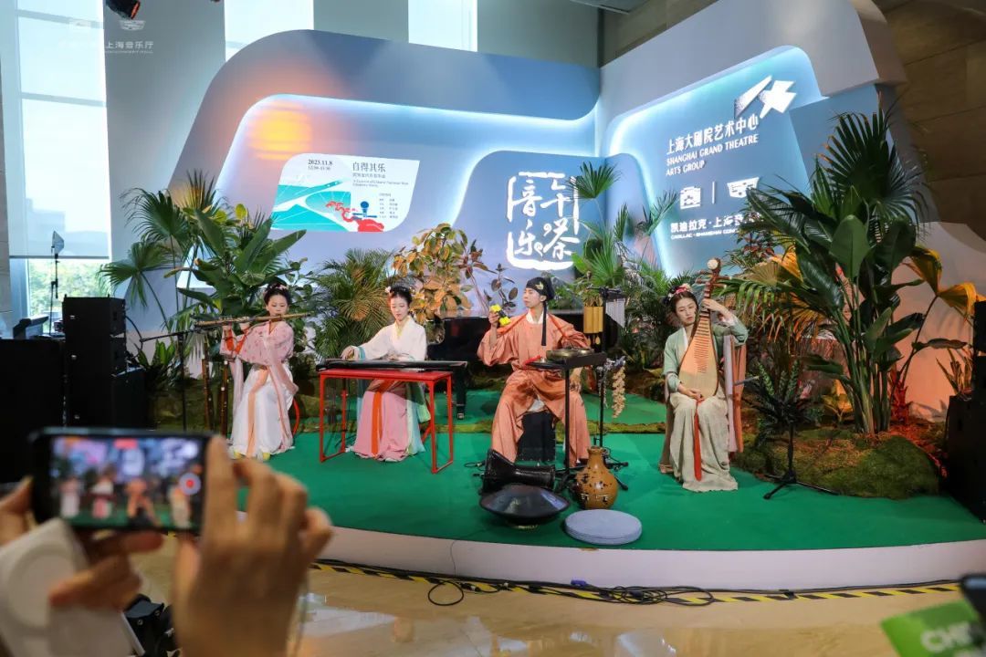 第六届进博会的第五天,破圈红遍海内外的国风乐团“自得琴社”首次加盟,在进博会新闻中心响彻“Z世代之声”。