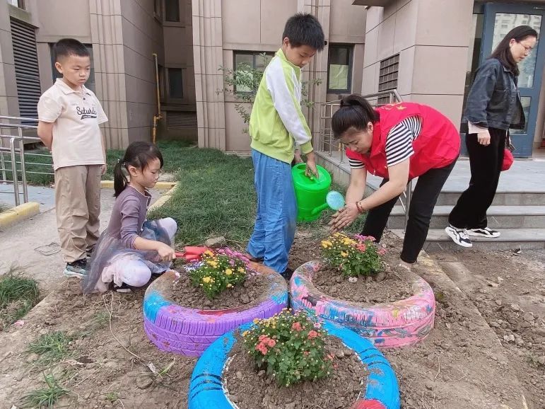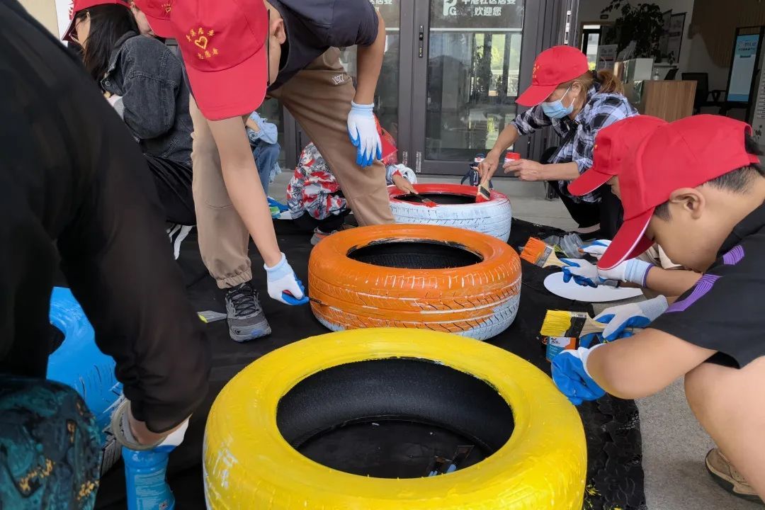 为了提升小区“颜值”,营造更好的居住环境,近日,平港社区新时代文明实践站利用废旧轮胎开展了“亲子创意轮胎彩绘——小小艺术家”主题活动,为轮胎“穿新衣”、为社区添新景。 勾线、平涂、点彩,小朋友们在工作人员和家长的协助鼓励下,发挥想象力与创造力,为一个个黑乎乎的轮胎披上颜色鲜艳的“新衣”。 他们相互讨论、相互合作,用自己喜欢的颜料,在废弃轮胎上一点点地认真描绘,现场氛围十分融洽。 经过大家的共同努力,小兔子、哆啦A梦、小乌龟……很快,一个个主题鲜明、色彩大胆、富有童趣的作品就产生了。 轮胎彩绘结束后,大家齐心协力把轮胎放到小区空地上,在轮胎里面装上泥土,种上菊花、月季花、喇叭花。 经过创意涂鸦,废旧轮胎“摇身一变”,成了一个个色彩斑斓的手绘花盆,为社区添了一道亮丽的风景线。 此次活动既将废弃物品进行再次利用,又美化了社区环境,同时也培养了小朋友们和社区居民的环保意识。 怎么样,很美吧!只要认真观察、积极动脑,很多生活中的废旧物都能变成艺术品哦。一起开动脑筋为它们赋予“新生”吧!