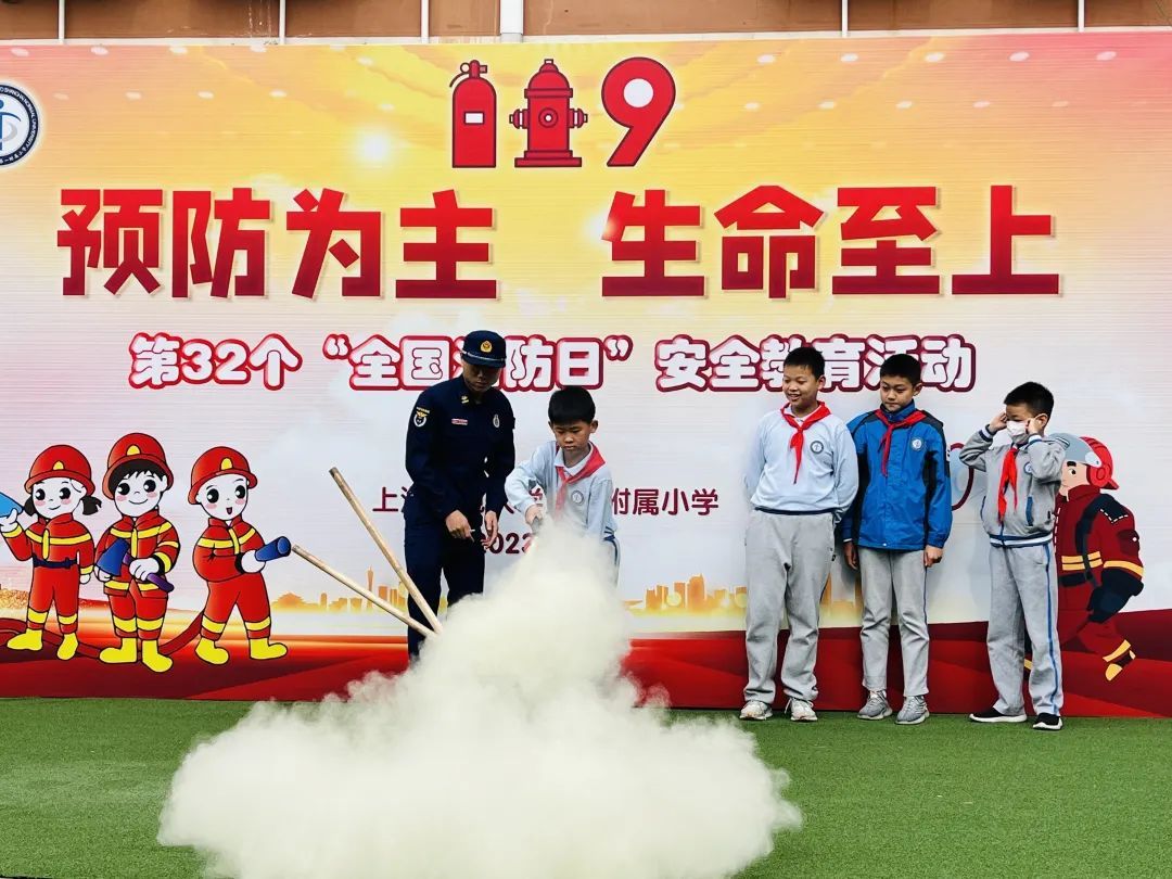 上海师范大学第一附属小学以一次主题为“预防为主 生命至上”的升旗仪式,开启消防安全主题月活动。为了帮助同学们提升消防安全意识,掌握基础的消防本领,学校邀请了漕河泾消防救援站的两位消防战士,为同学们带来灭火器的使用演练以及消防安全主题讲话。本月学校还将继续开展消防安全主题班会、消防演习等各种形式的教育活动,树立全校师生“学消防、懂消防、用消防”的安全意识,构筑校园消防安全环境。