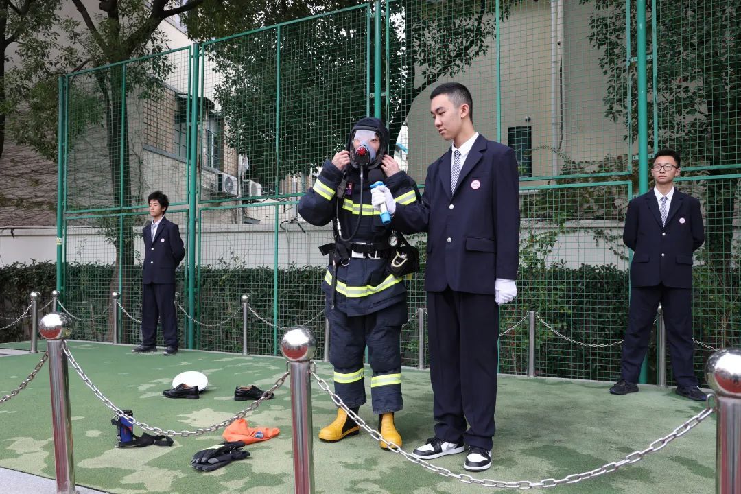 中国中学初高中邀请漕河泾消防站的警官开展了消防“微课堂”。方警官从火情观察、火灾逃生方法、如何预防火灾等方面结合消防员的实例进行讲述,并带来了平时使用的消防防毒面具,生动地讲解了火灾的各种小知识。情境的描绘让同学们将消防知识内化于心,沉浸式体验消防疏散,实操灭火设备更是让同学们将消防知识外化于行,转化为真正的行动力。