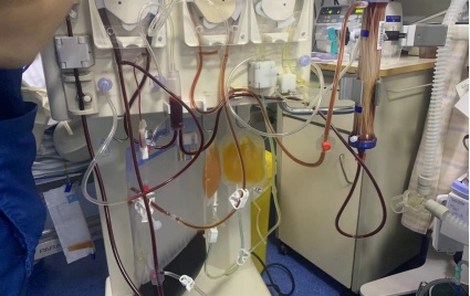 而后陈大伯被转入杭州市第一人民医院急诊科。接诊的郑相主治医师发现,病情已经进展到多器官功能衰竭、血管内溶血、横纹肌溶解综合症、尿毒症……病情进展极快,随时有生命危险。医护团队第一时间为他进行了血浆置换。
