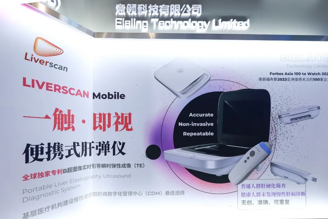 据意领科技相关负责人介绍,Liverscan是意领科技自主研发的全球首创掌上无线肝弹仪,此设备将瞬时弹性成像(TE)与实时超声图像引导两项技术集成于单个复合探头内,通过实时影像引导大幅提升成本效益和准确度,操作十分便捷。在临床实际检测中,先把超声耦合剂抹在皮肤表面,之后将探头放在第六和第七根肋骨之间,便可在图像上清晰直观地看到检测区域。按下检测键时,使用者会感受到皮肤弹了一下,仪器上便会出现肝脏组织硬度的数值和脂肪衰减的数值,一个代表肝脏硬化程度,一个代表脂肪肝轻重程度,在2分钟之内就可以拿到结构化报告。