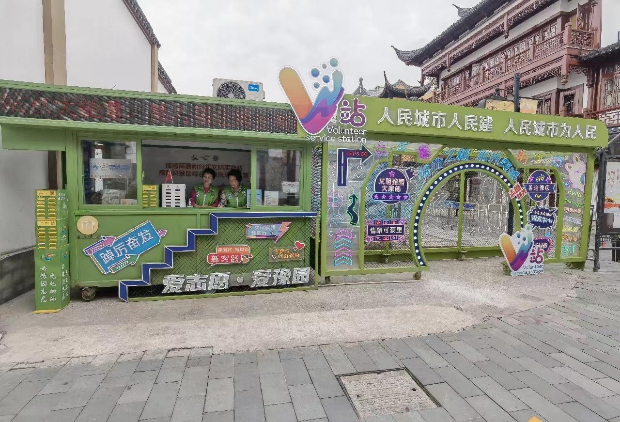 V在英文里,代表volunteer(志愿)、vitality(活力)的意思;V在中文里,也有谐音“微笑志愿”“微站点”的含义,表达着小微站点,却拥有大能量、传达大文明的意思。这一年来,小小的岗亭迎来了一批又一批的志愿者,他们秉持着“微笑服务,温度豫园”的理念,以商圈V站服务亭为中心,值守在豫园景区及周边,多方协力奏起大客流志愿服务交响乐章。
