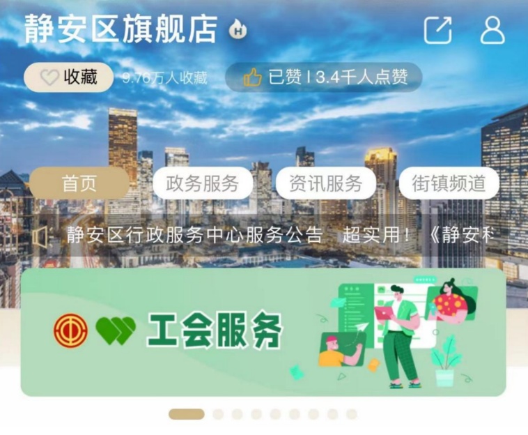 现在,市民只需通过登录“随申办”APP(或登录支付宝、微信搜索“随申办”)、搜索“静安旗舰店”、点击“工会服务”界面,即可线上一键申请工会互助保障给付。