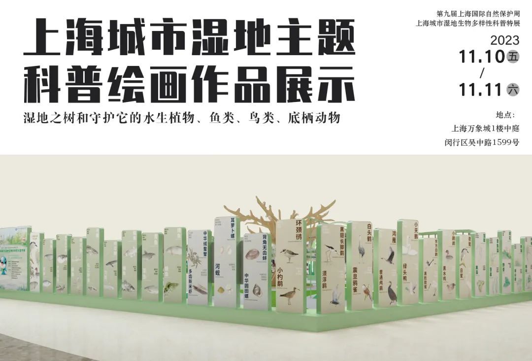 满满一墙的物种绘本原画,展示了上海城市湿地常见物种原创画作以及物种信息的科普知识,快来学习学习吧。