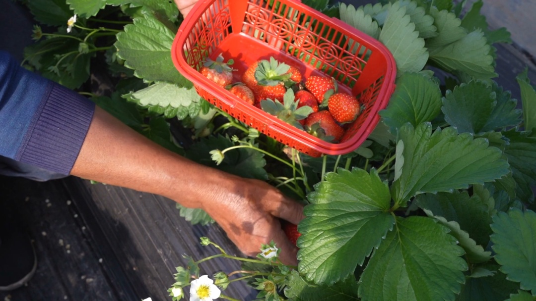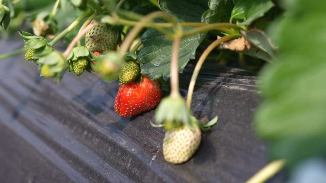 据悉,灯塔村发展草莓产业十余年,有“红颜”“白雪公主”“申馨”“越秀”等近20个品种。“我们还饲养蜜蜂为草莓授粉,以提高草莓的产量和品质。”合作社相关负责人表示。