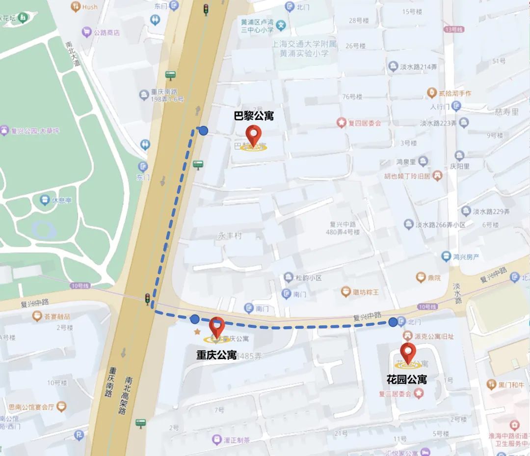 两条道路刚辟路时,周围都是农田,1906年法商电灯公司、电车场建造,1908年震旦大学由徐家汇迁入,1909年西北段顾家宅辟为法国公园正式开放,周边逐渐繁荣,至20世纪30年代,这里已经成为了居民集中的地区,本篇介绍的三幢公寓均建造于这一时期前后。