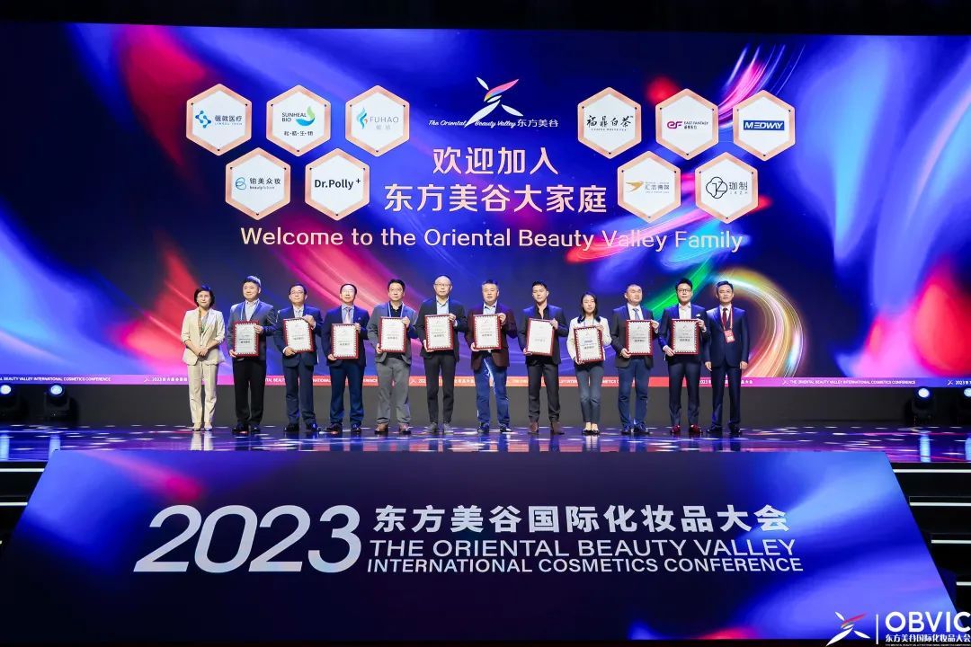 奉贤区政协主席陈勇章、上海市药品监督管理局局长徐徕为东方美谷第二批新成员单位授牌。