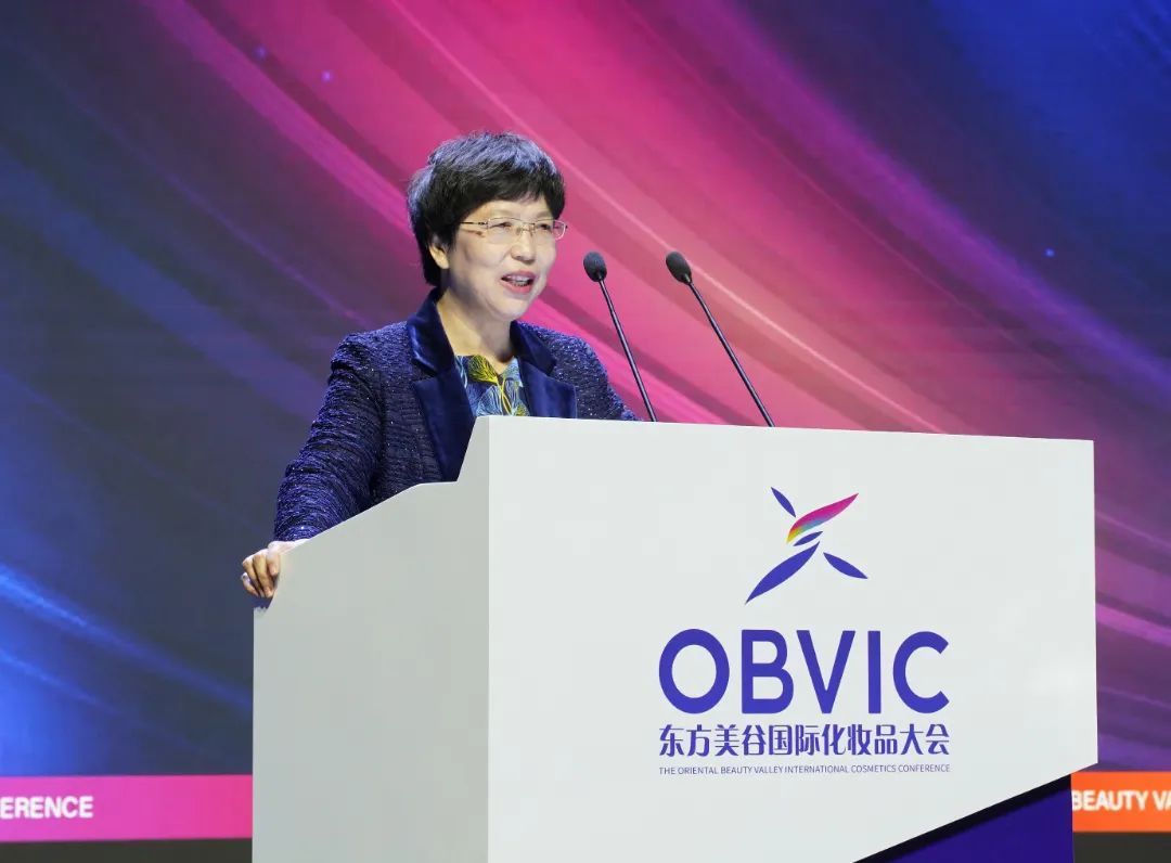 国家药品监督管理局化妆品监督管理司司长李金菊致开幕辞。