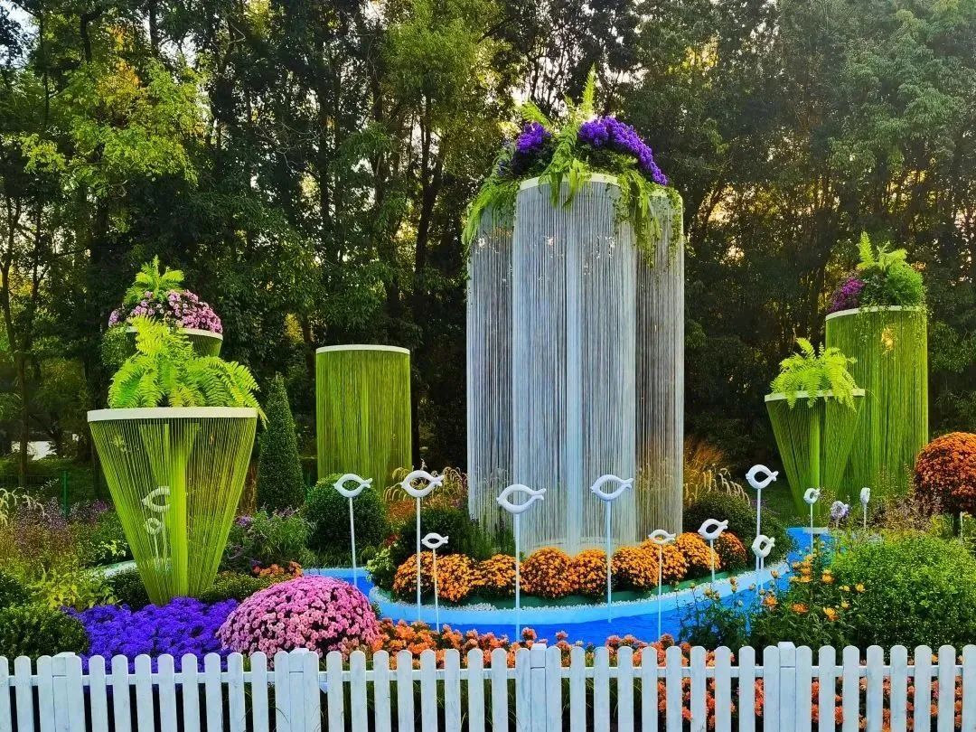 花展以300米长主干道为主线,在西门照壁、水杉林等处布置4处造型各异的菊文化主题景点,以菊花为主,辅以鹿元素立雕、山峦、祥云、篱障等剪影及其他时令花卉,通过精心布局,烘托出别样的花展氛围,营造“采菊东篱下,悠然见南山”的赏菊意境。
