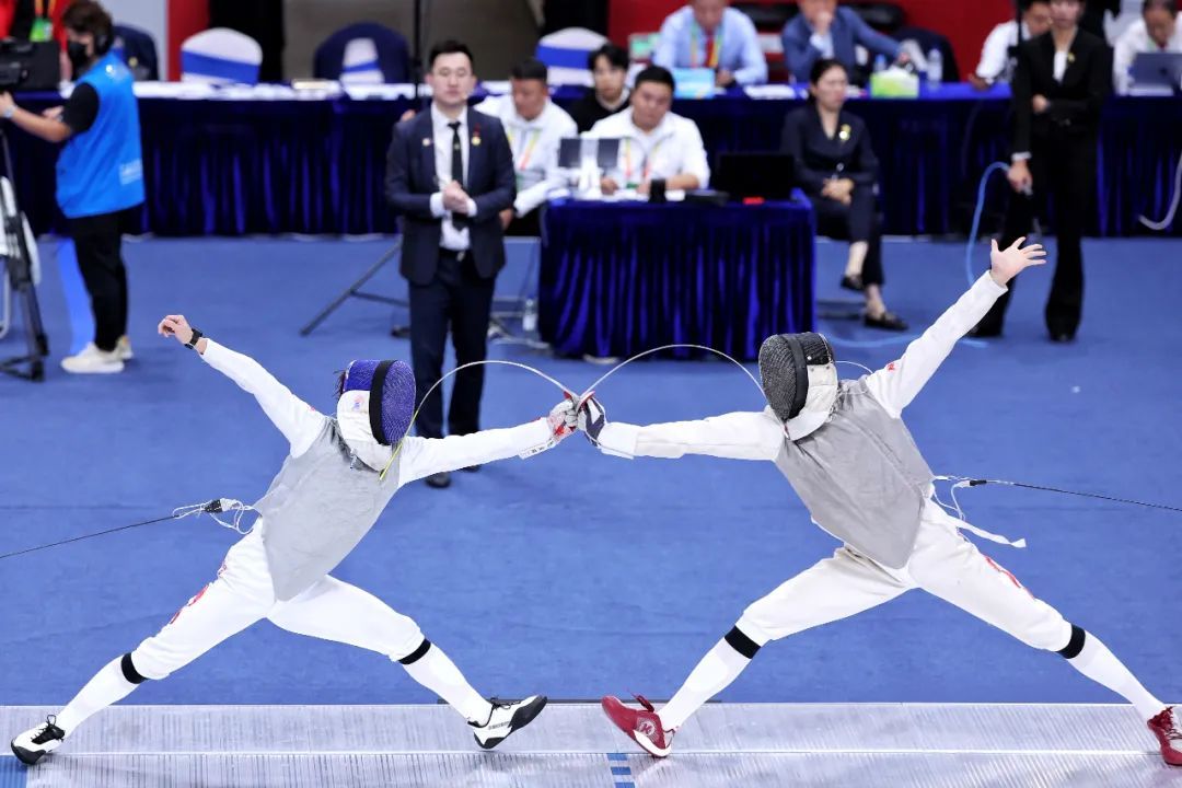 在男子花剑团体赛中,上海市杨浦区队的蔡金琿、顾宇昂、吕惟乔、殷晓鹏表现出色,在铜牌战中以45比42击败福建福州市队,摘得该项目的铜牌。