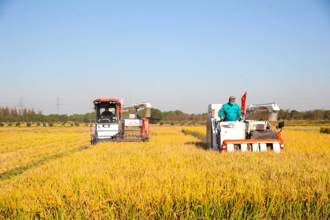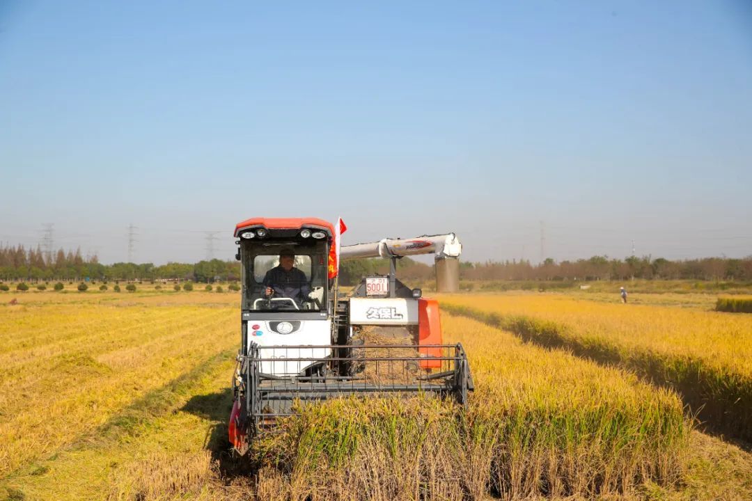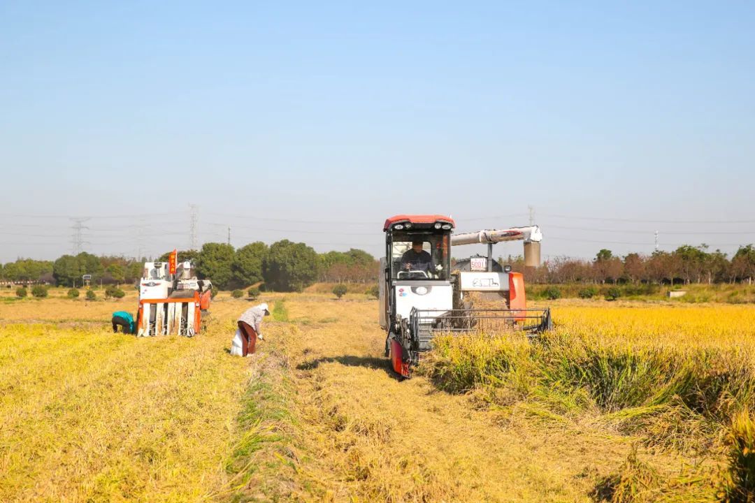 眼下,松江的晚稻陆续成熟,稻田里金浪滚滚。在小昆山镇万亩良田,约1.1万亩晚稻也迎来了大面积收割,呈现一派喜人的丰收景象。
