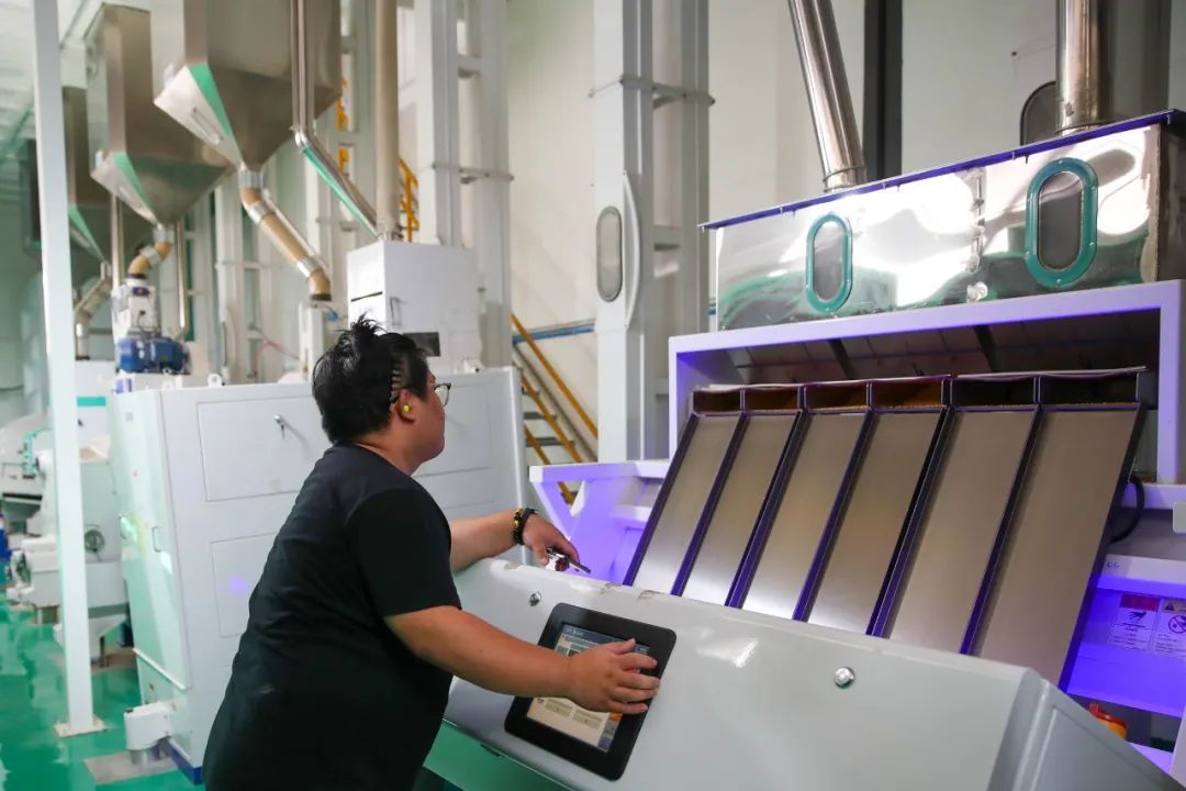 小昆山大米加工厂建筑共占地约7000平方米,包含烘干、加工、包装流水线、稻米文化馆及低温冷库两部分。在大米加工厂标准化生产区域,记者看到,去杂、去石、去湿、低温碾制、色选、抛光、装袋,全自动化加工生产线正在忙碌运转。大米加工厂负责人郑海彬介绍,目前,小昆山大米加工厂还辐射到了青浦及松江其他镇,不少农户都来此加工大米。