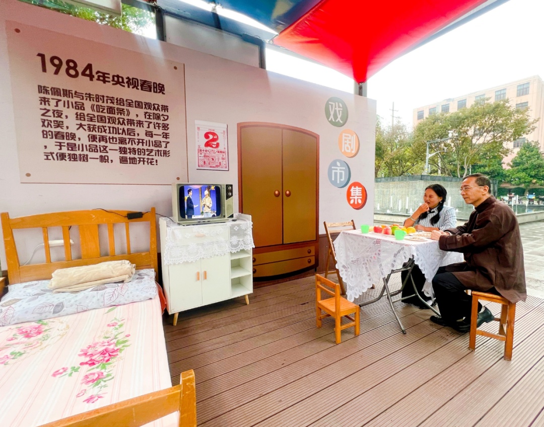 本次戏剧市集布设在今潮8弄室外广场,通过真人演绎、木偶表演、场景再现、剧本朗读等不同的戏剧表现形式,展示戏剧艺术特色、戏剧艺术在虹口的发展历程,以戏剧艺术表现虹口文化积淀,用集市拉近戏剧与广大群众的距离。