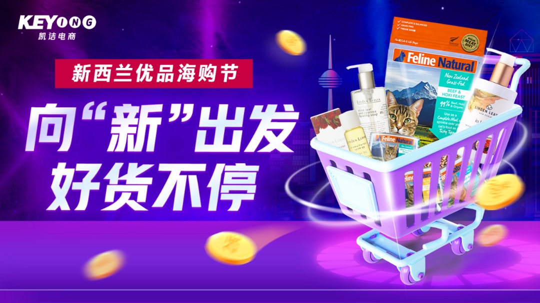 凯诘电商联合其服务的新西兰品牌举办“向‘新’出发 好货不停—新西兰优品海购节”,覆盖淘宝、抖音两大主流电商渠道进行专题直播,为消费者带来新西兰的精油产品、宠物食品的促销优惠。
