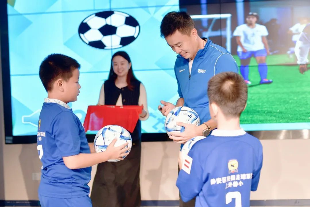 在活动现场,学校的足球小将们花式颠球秀球技,足球运动员、前国脚孙吉在给予鼓励和指导之余,也亲身示范了颠球、传球、停球等,赢得现场学生的阵阵喝彩。