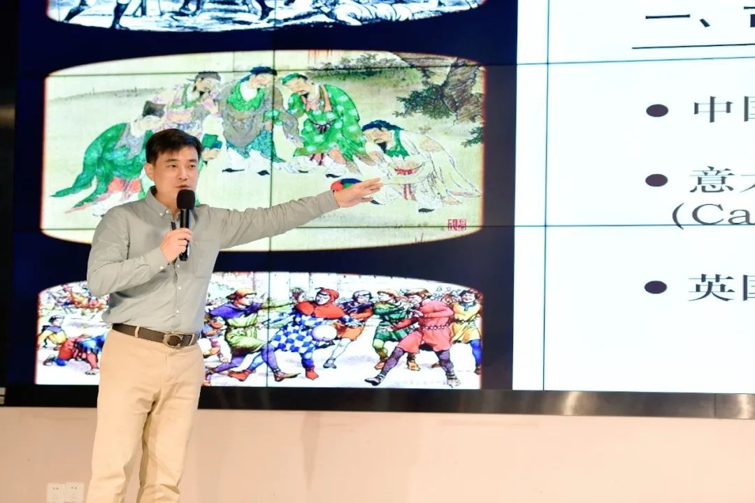 上海体育博物馆讲解负责人宋玥为师生们讲述足球运动的精彩故事